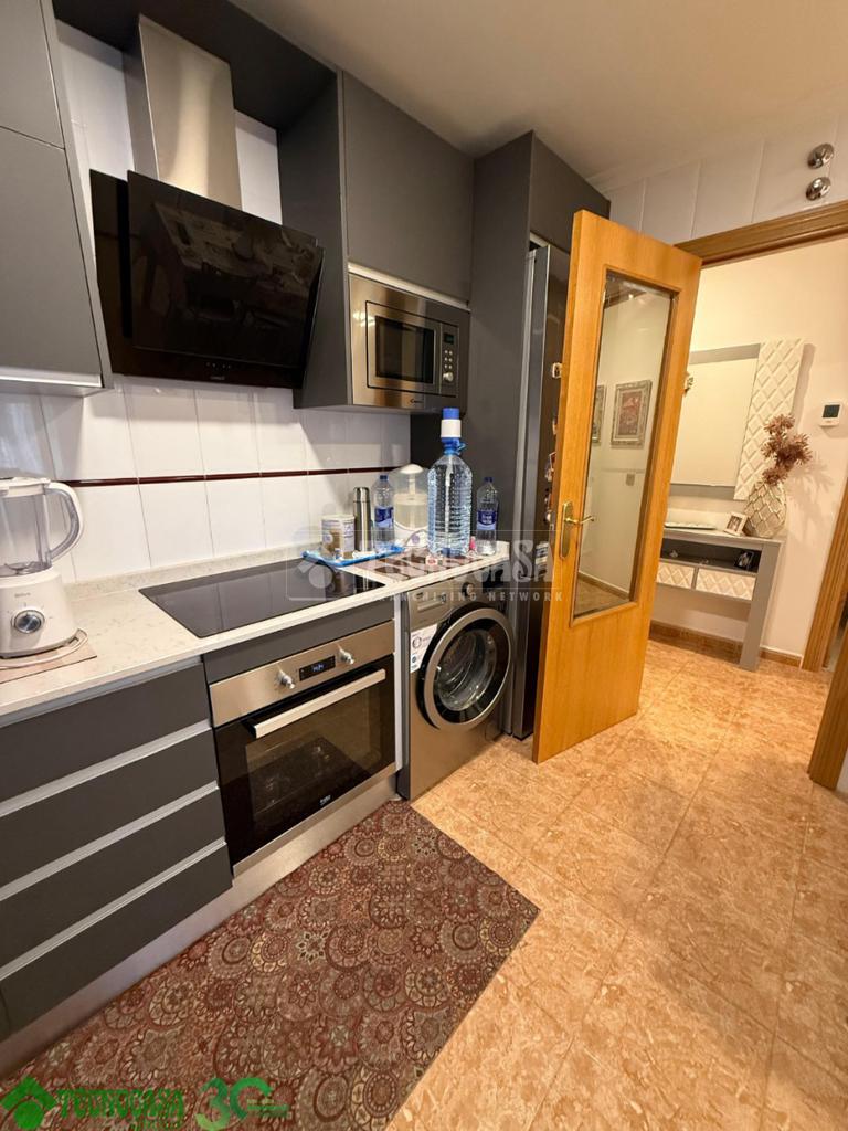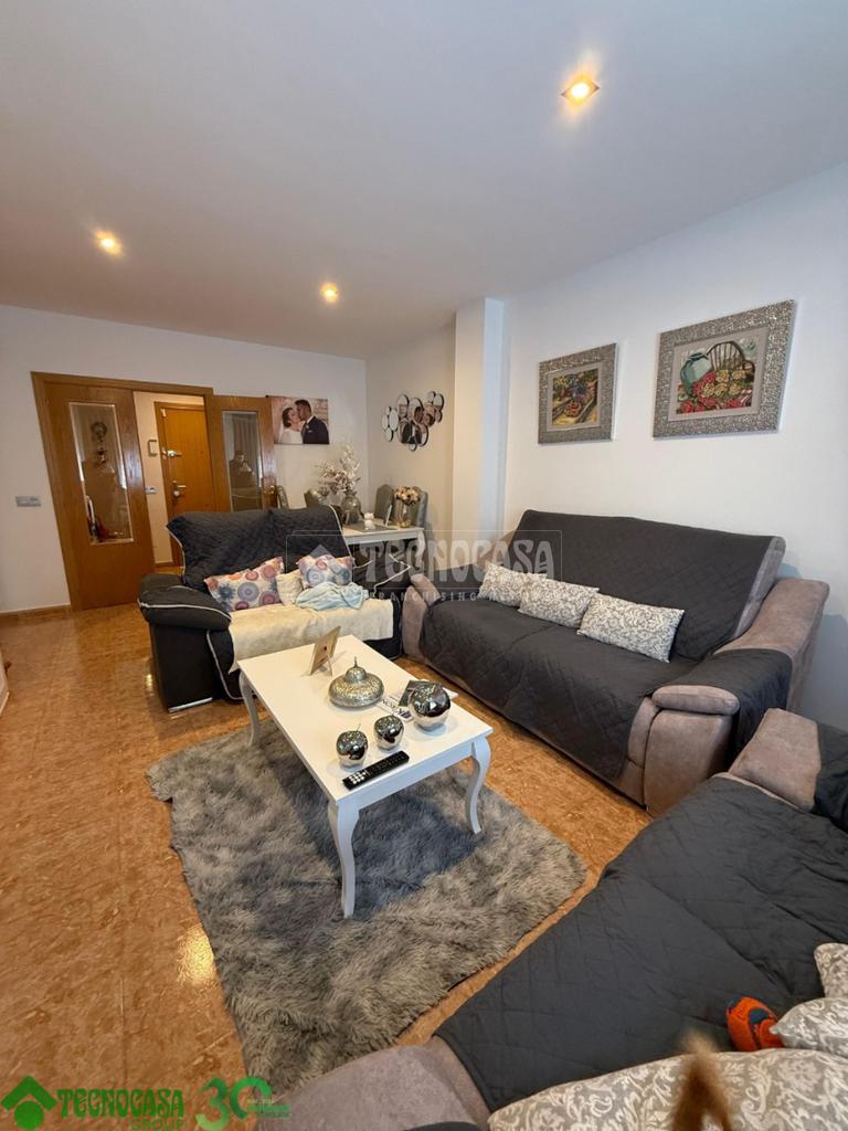 Dispone de 3 amplios dormitorios con armarios empotrados, 2 baños completos, amplio salón con balcón a la calle principal, cocina con terraza y calefacción de gas natural individual.