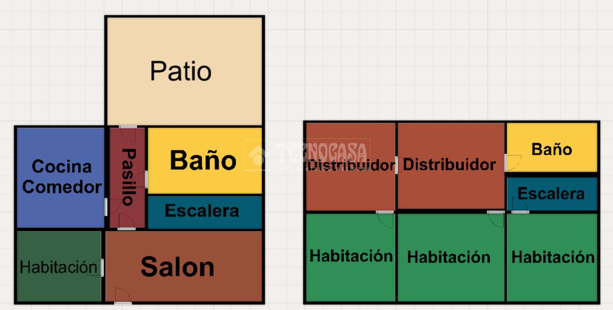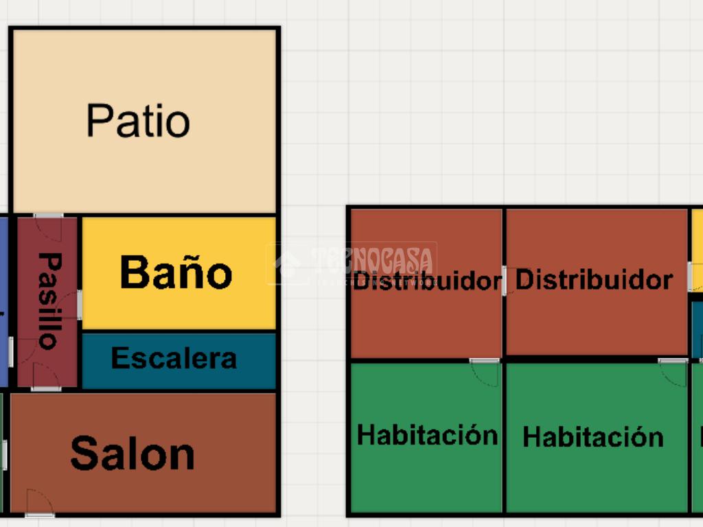 En la primera planta encontramos la cocina, salida al patio trasero, salón, 1 dormitorio, 1 baño completo.